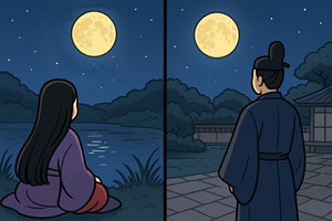 画像:ChatGPTに描いてもらった、紫式部と藤原道長が月を共視する画像