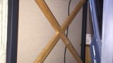 このとき、穴が斜めにならないように、ドリルを垂直に当てることが重要で、特に丸材の場合、結構難しい。本来なら、ボール盤を使いたいところだが、仏間DIYでは望むべくもない。