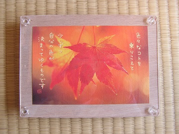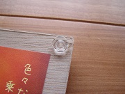 はがきサイズのカードを飾っておく額があるといいなと思っているところに、ホームセンターで透明なボルト・ナットを発見して、これだ!と思った。 |