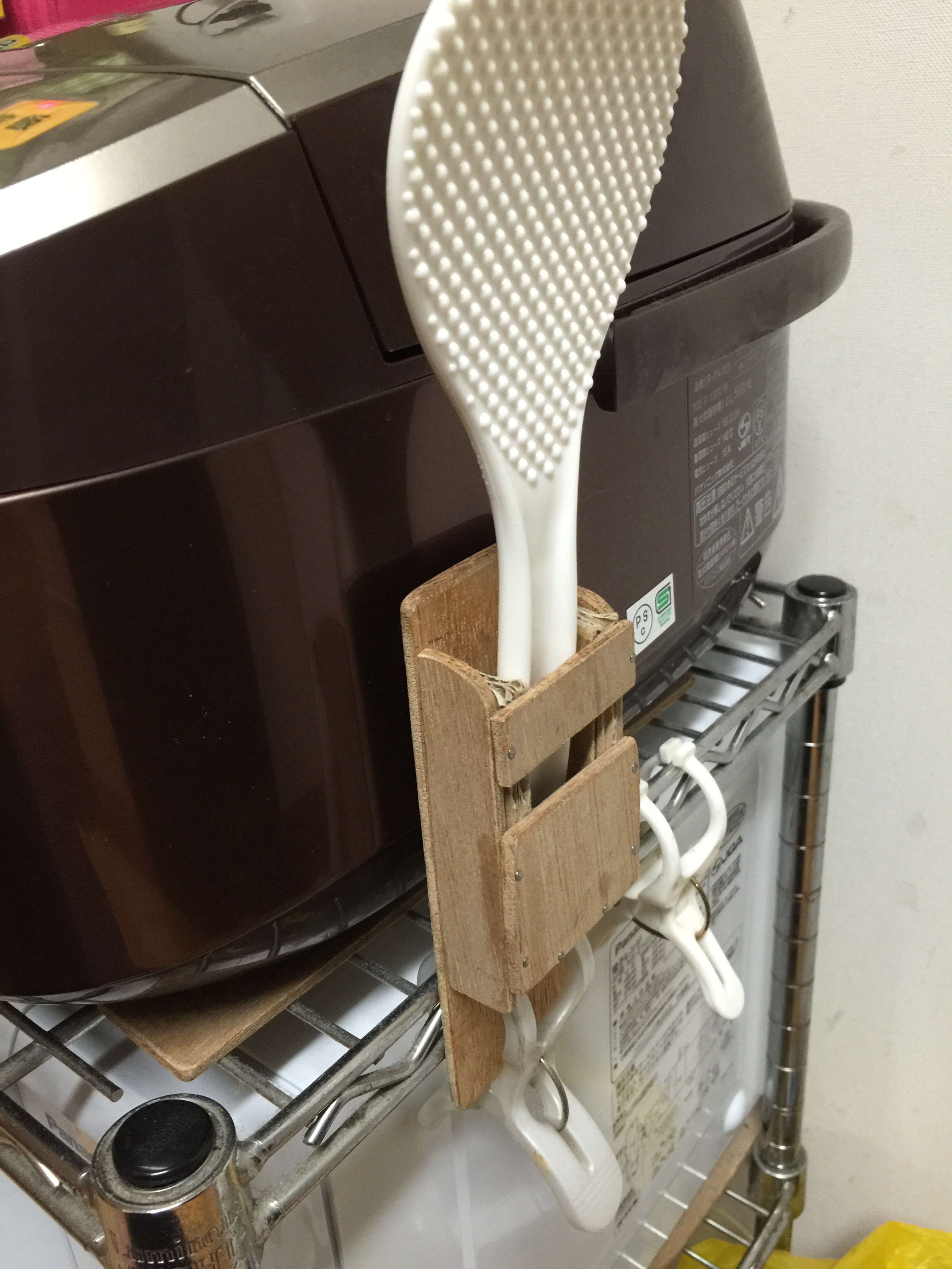 炊飯器に付属のしゃもじホルダーが小さくて、使いづらかったのでもう少し使いやすいものを自作しようと思った。