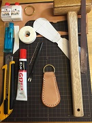 革を売っている店はあまりないが、たまたま岡崎市には1軒あり、道具も初心者用のセットに近いものをバラで購入。革もキーホルダーなので、小さなものでよく、安価に購入できた。