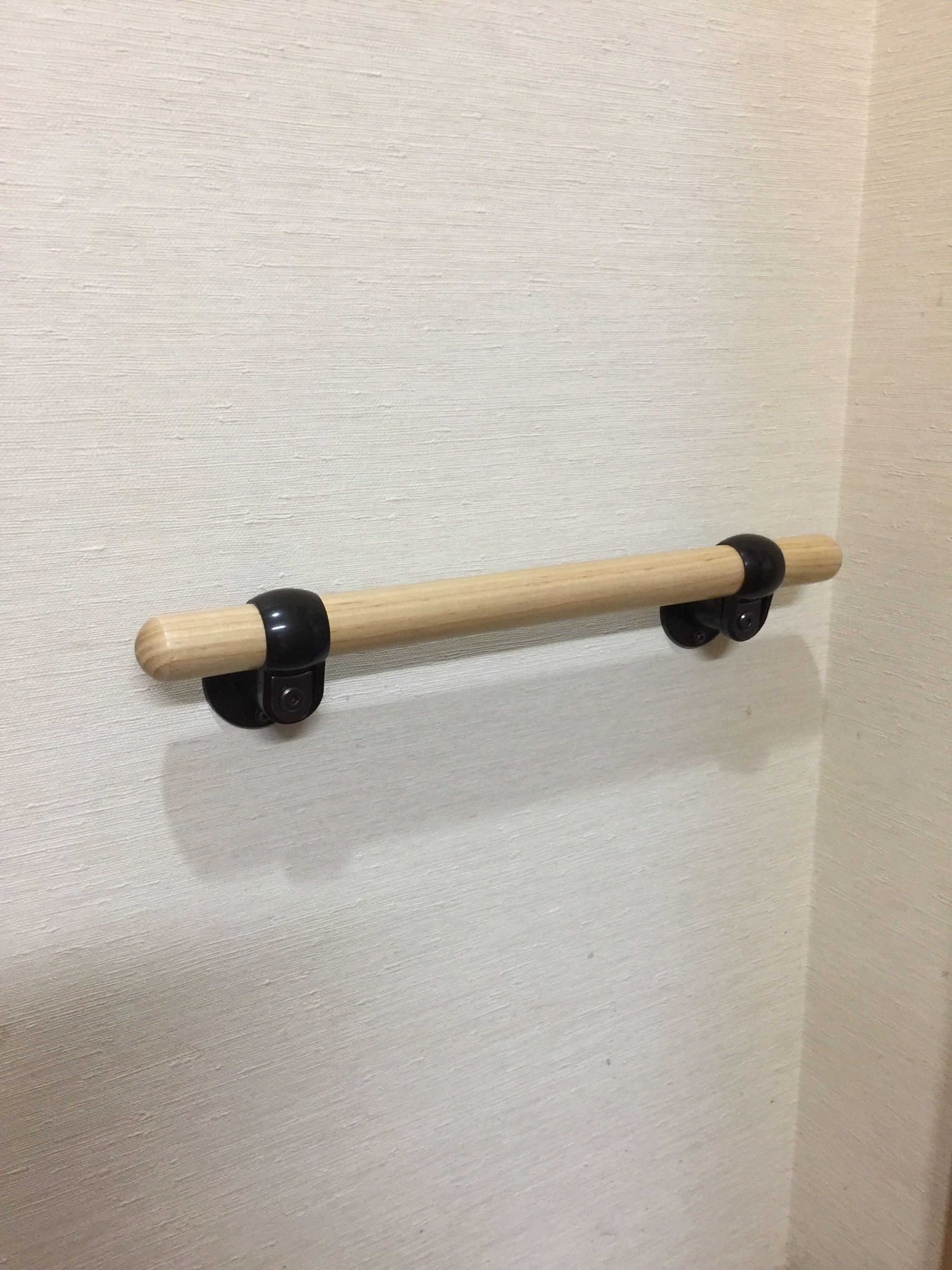 手すりを付けるには、きちんと木ネジが打てる場所を特定する必要があるが、これを見つけるのがなかなな難しい。慣れれば簡単なのかもしれないが、設置したい場所付近に、丁度良い木の場所を壁の外側から見つける必要がある。